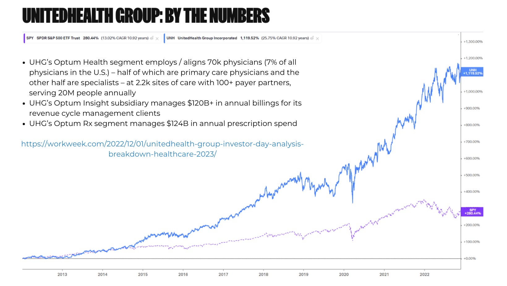 UnitedHealth is doing very well, largely due to the growth of Optum and Medicare Advantage.