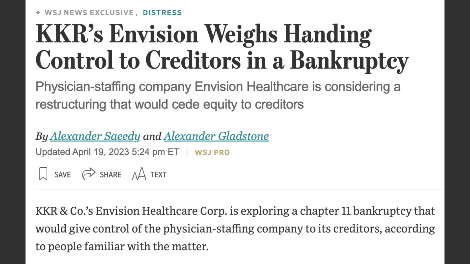 Envision is barreling toward bankruptcy.